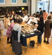 学校全体が巨大なマーケットに変身! クラスやコースの垣根を越えて学生がオリジナルブランドの販売ブースを出店します。