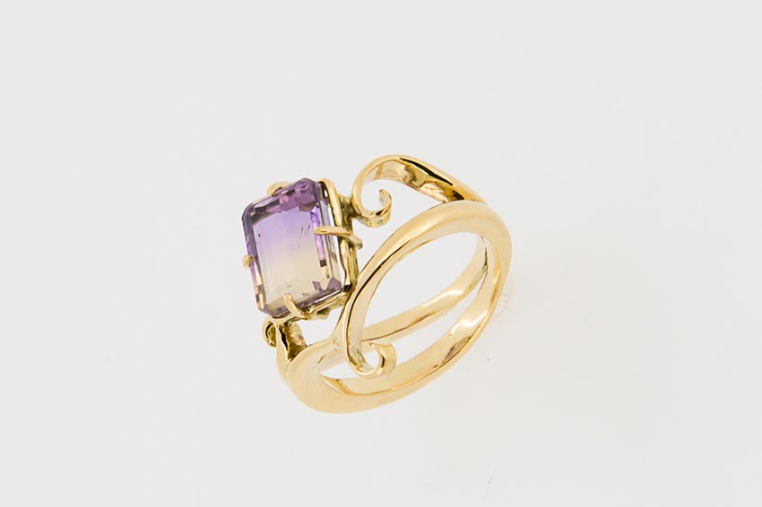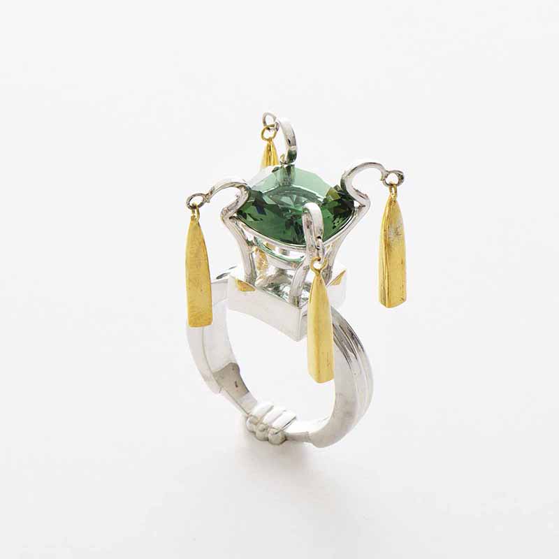 ターゲットのライフスタイルや趣味などを設定。それに合ったデザイン、価格も考え制作します。K18素材の加工と仕上げ方法、宝石に合ったデザインやセッティングを学ぶ実践的な課題です。