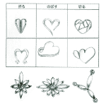 ひとつのデザインを展開し、バリエーションを増やす方法を学びます。モチーフの展開スケッチからジュエリーアイテムのデザインに落とし込みます。